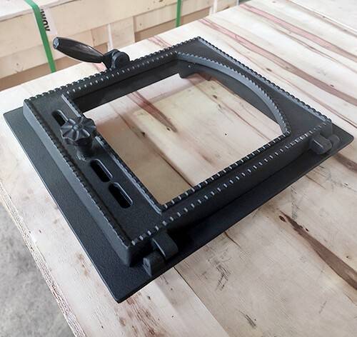 The BHB-K404 290x325mm fire door is a premium, airtight stove door made from durable SCH20 cast iron. Designed for masonry heaters, wood stoves, and other heating appliances, it ensures optimal heat retention and efficient combustion. Its robust construction guarantees long-term reliability and safety for your heating system.