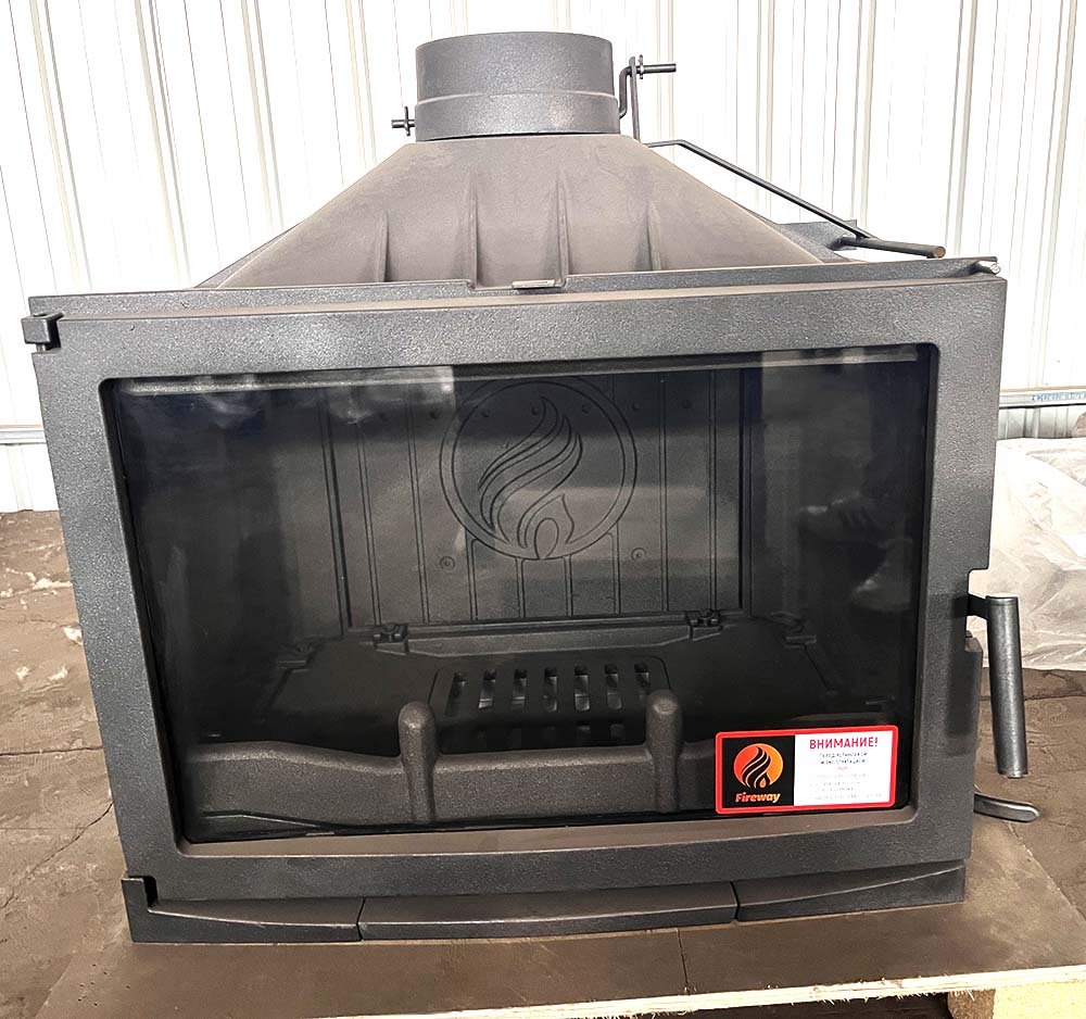 Install the fireplace insert on a non-combustible base with proper ventilation. Connect to a chimney with a 180 mm diameter top outlet. Use dry logs or wood briquettes for optimal efficiency. Adjust the shiber damper to control heat output. Regularly clean the ash pan and glass to maintain performance.