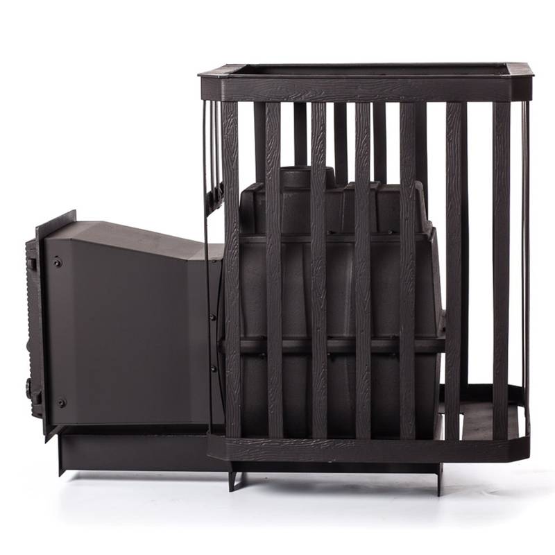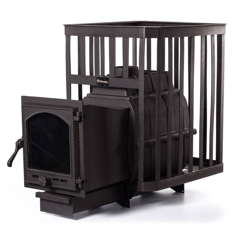 “High-quality cast iron sauna stove. Heats the sauna evenly and the stone compartment is easy to load.”