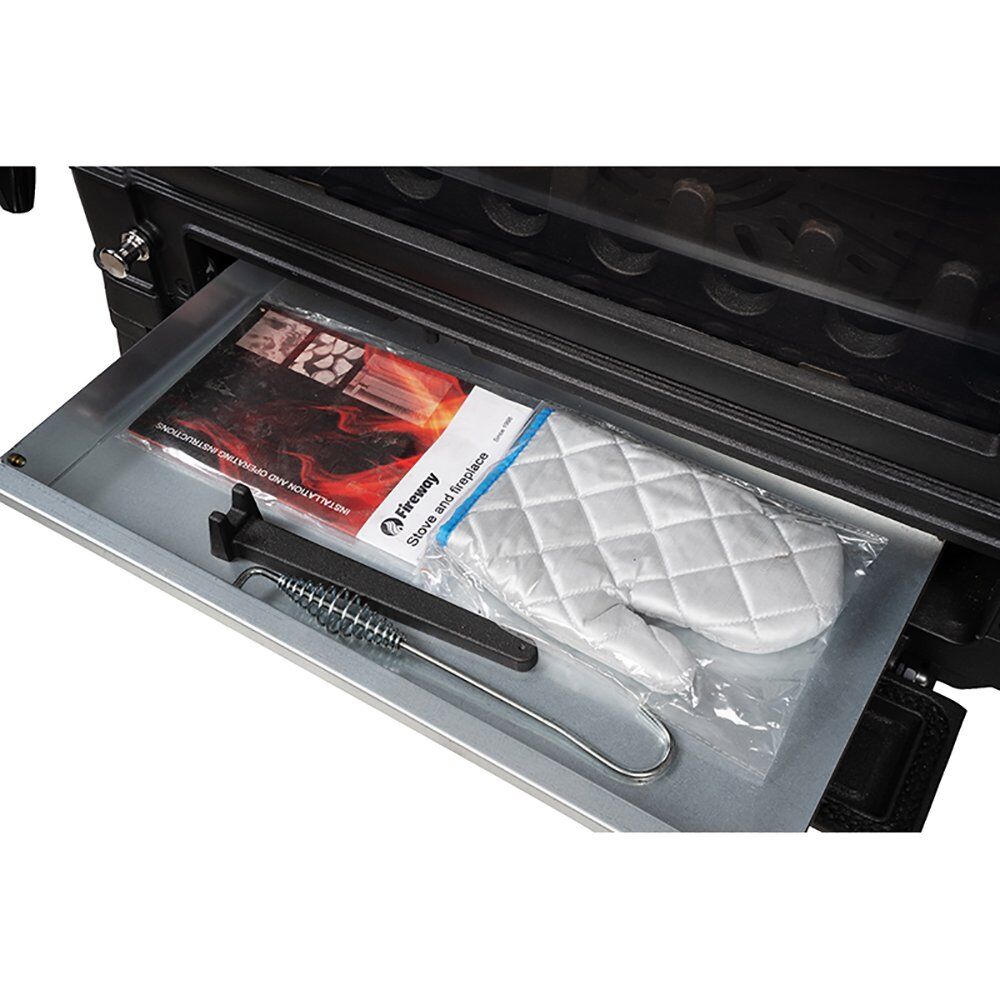 • Glass door for viewing the fire