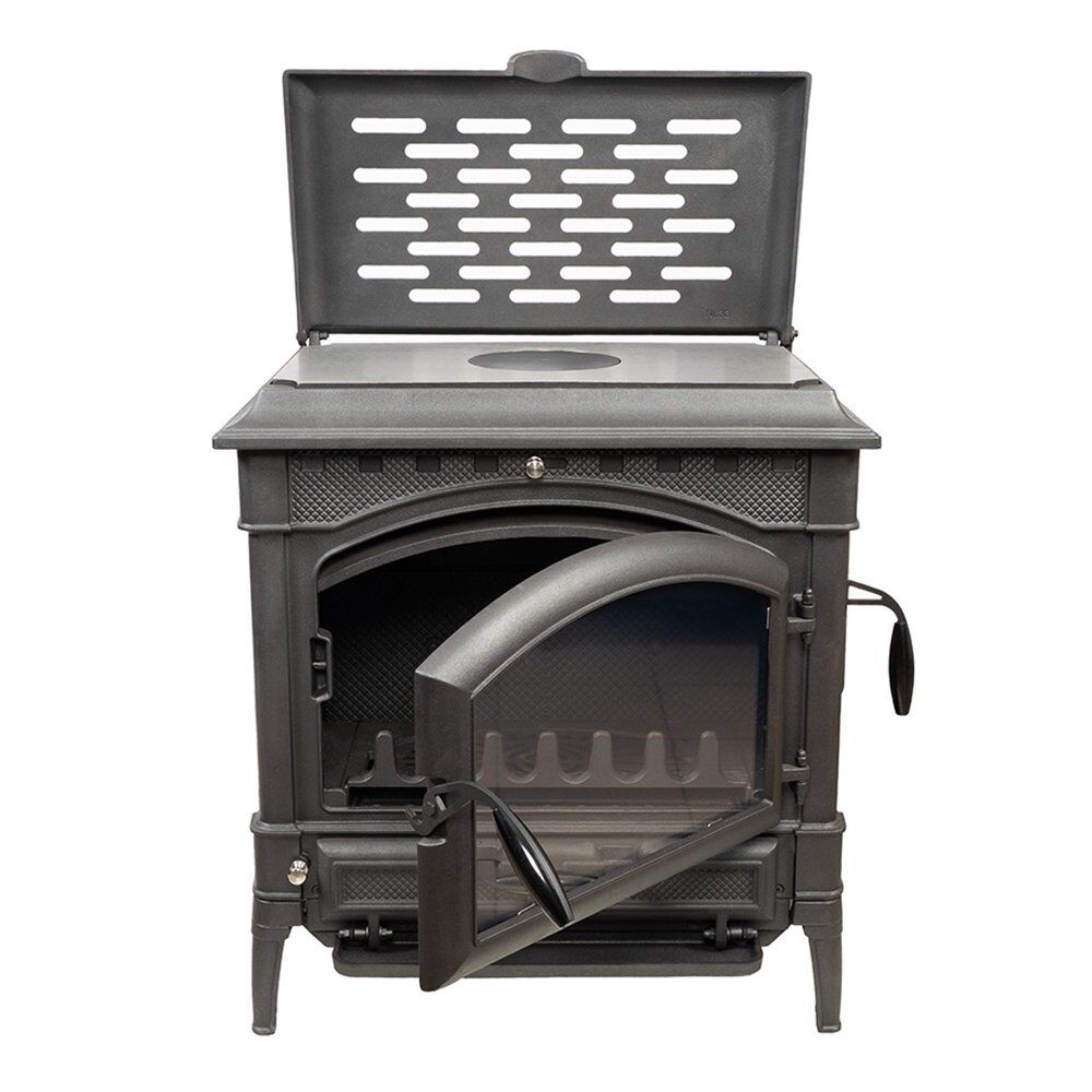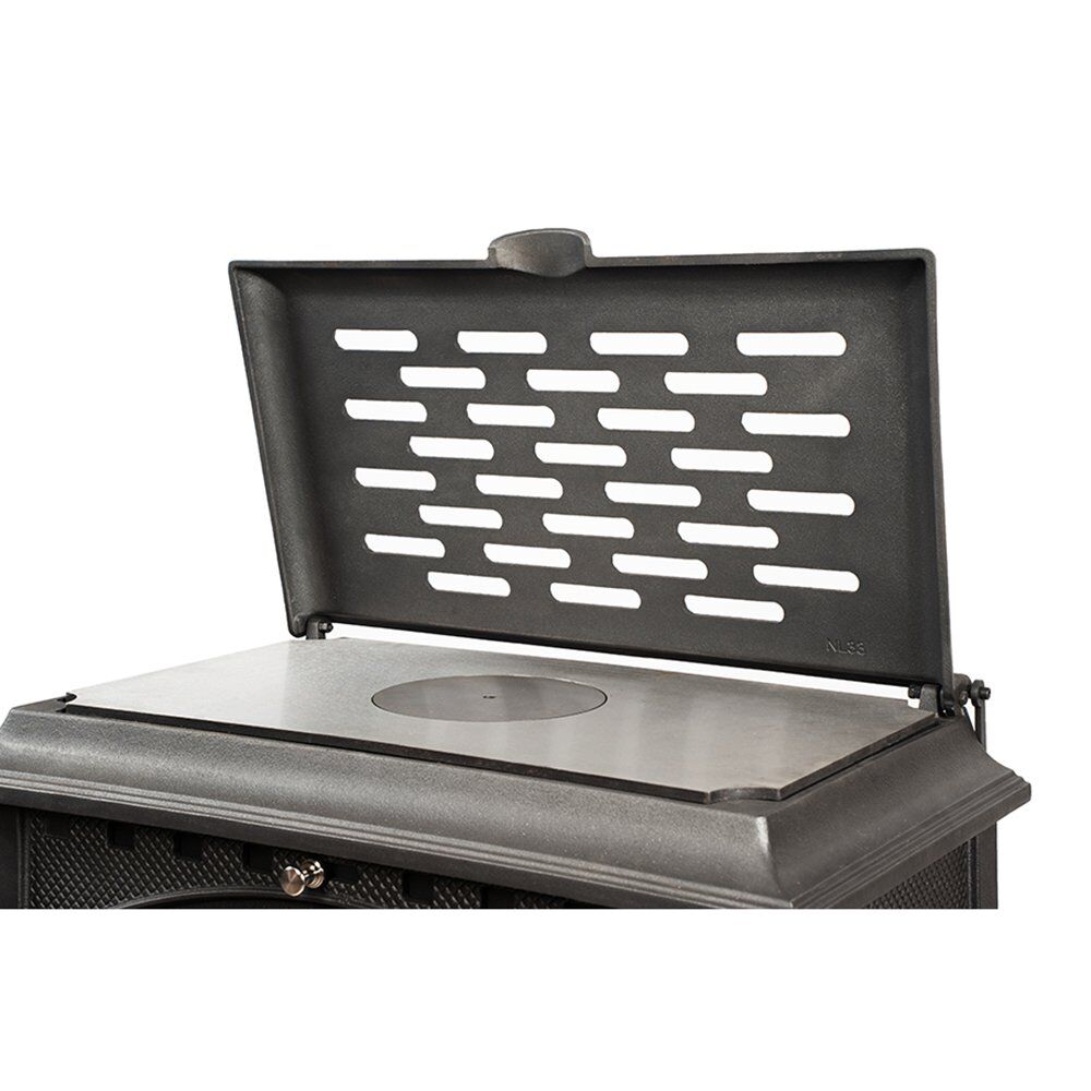 Maria S.: “Highly satisfied with the stove. It heats my 250 m³ room efficiently and the cooking surface is a nice bonus.”