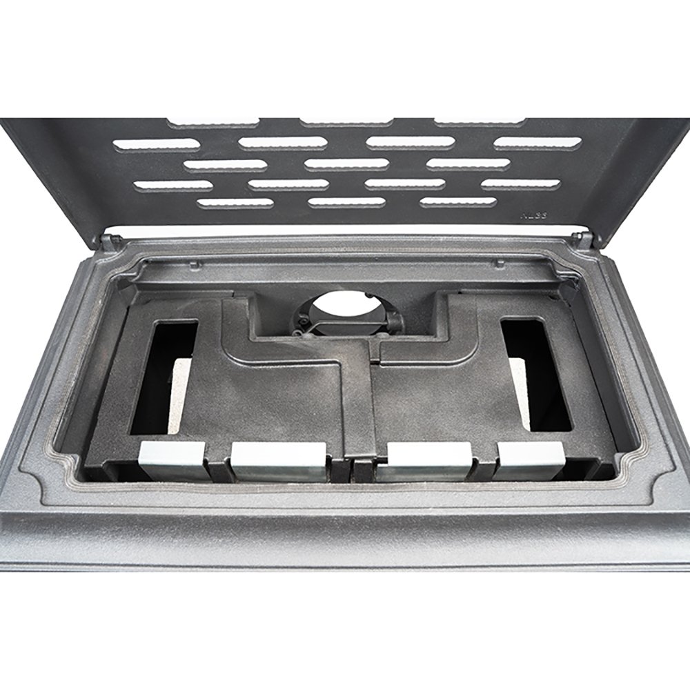 Solid cast-iron body (225 kg) ensures exceptional heat retention and long-term durability.