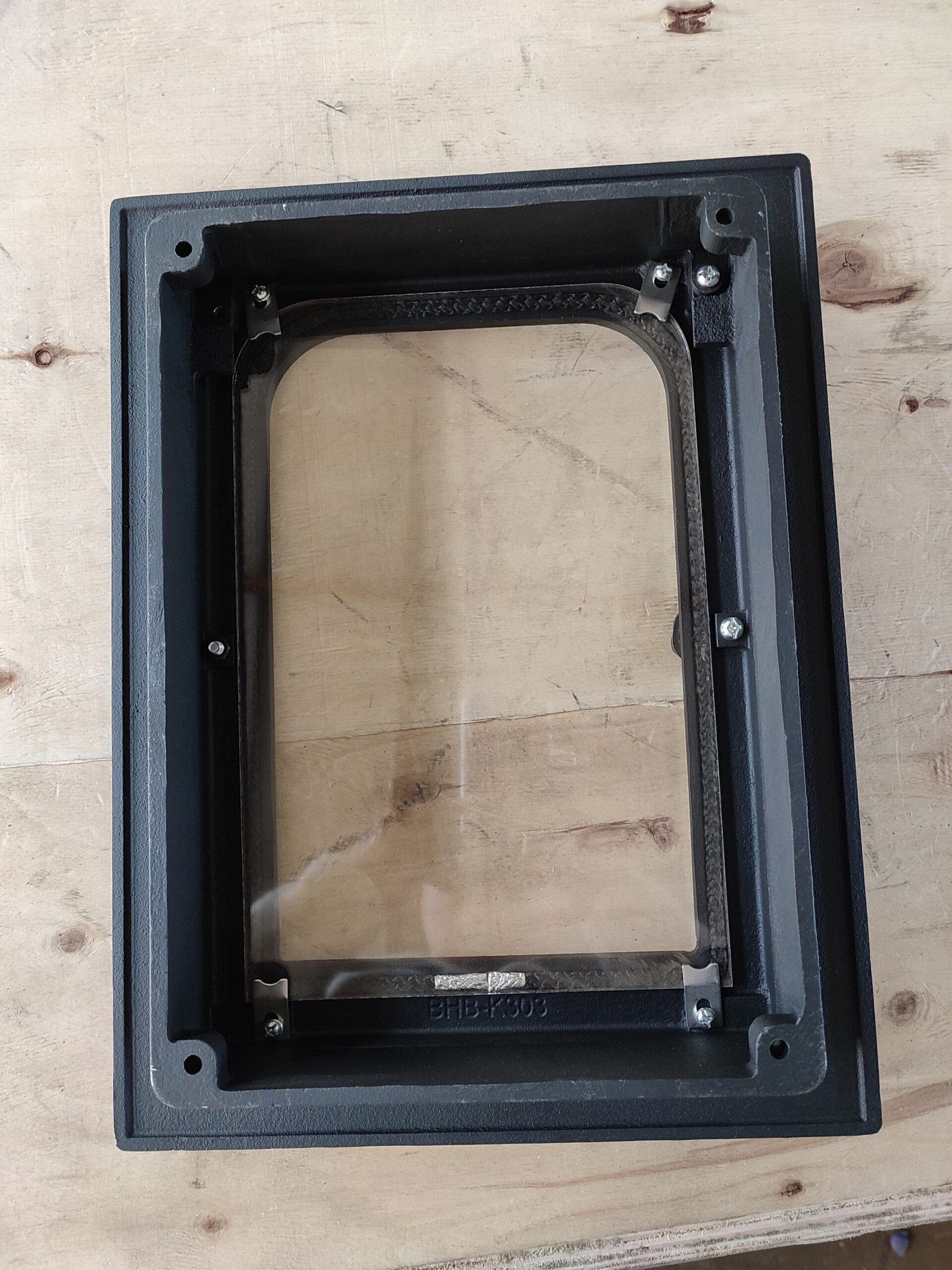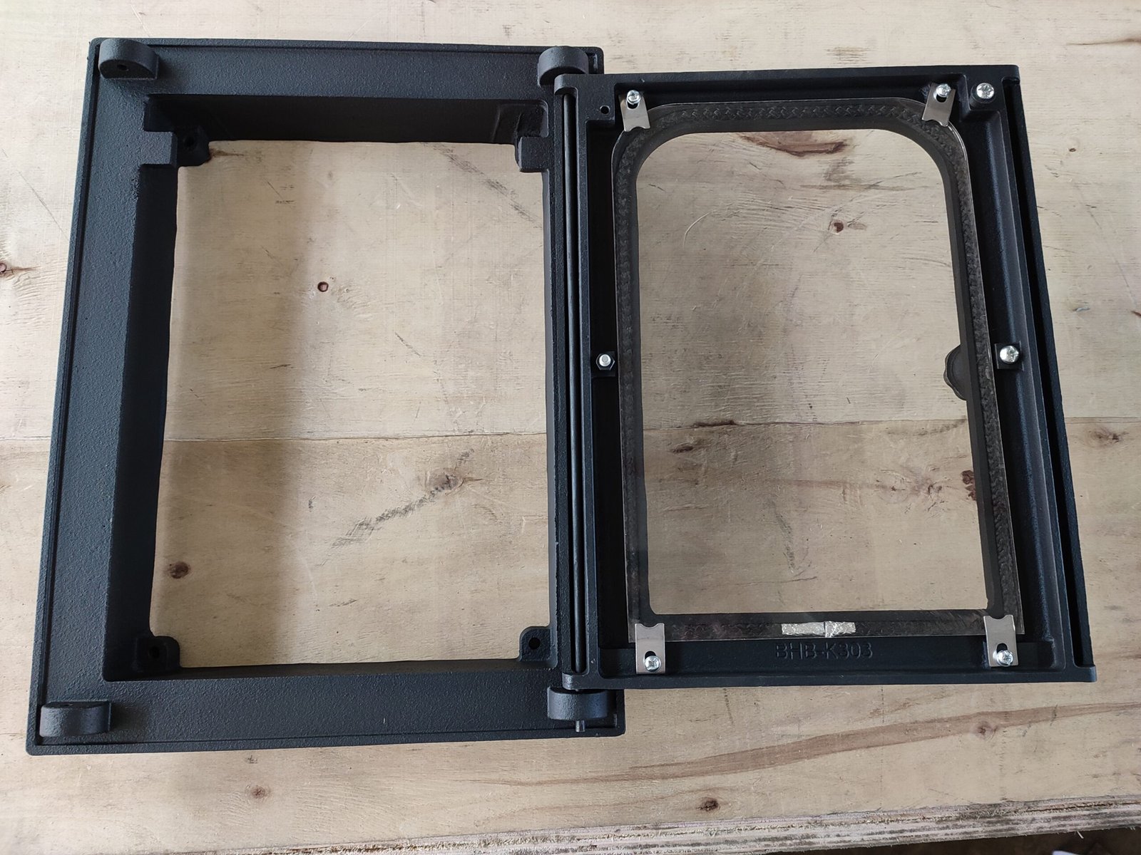For installation, place the K303 Cast Iron Door in the designated area of your masonry heater. Ensure it is securely hinged and properly sealed to maintain optimal efficiency. Please refer to the manufacturer’s manual for detailed instructions on installation and maintenance.