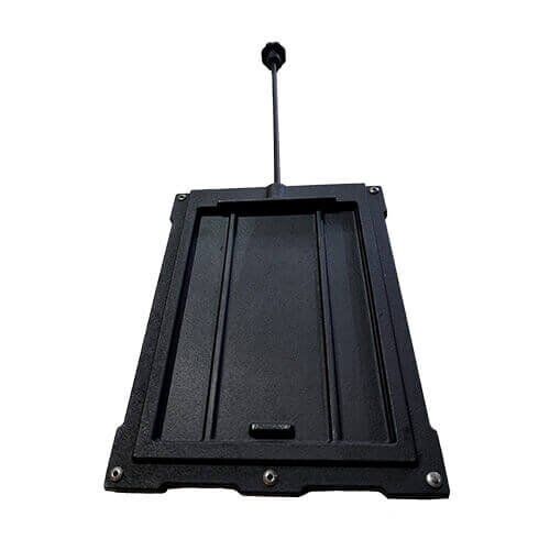The damper is manufactured from Sch20 grey cast iron, known for heat resistance and structural stability.
